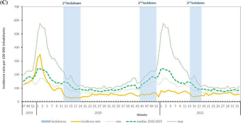 Epidemiology of acute gastroenteritis in France from November 2019-August 2021, in light of reported adherence to COVID-19 barrier measures