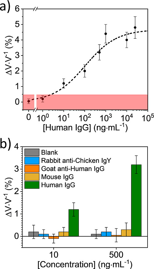Magnetoresistive (MR) biosensors combine distinctive features such as small size, low cost, good sensitivity, and propensity to be arrayed to perform multiplexed analysis. Magnetic nanoparticles (MNPs) are the ideal target for this platform, especially if modified not only to overcome their intrinsic tendency to aggregate and lack of stability but also to realize an interacting surface suitable for biofunctionalization without strongly losing their magnetic response. Here, we describe an MR biosensor in which commercial MNP clusters were coated with gold nanoparticles (AuNPs) and used to detect human IgG in water using an MR biochip that comprises six sensing regions, each one containing five U-shaped spin valve sensors. The isolated AuNPs (satellites) were stuck onto an aggregate of individual iron oxide crystals (core) so that the resulting core@satellite magnetic particles (CSMPs) could be functionalized by the photochemical immobilization technique-an easy procedure that leads to oriented antibodies immobilized upright onto gold. The morphological, optical, hydrodynamic, magnetic, and surface charge properties of CSMPs were compared with those exhibited by the commercial MNP clusters showing that the proposed coating procedure endows the MNP clusters with stability and ductility without being detrimental to magnetic properties. Eventually, the high-performance MR biosensor allowed us to detect human IgG in water with a detection limit of 13 pM (2 ng mL-1). Given its portability, the biosensor described in this paper lends itself to a point-of-care device; moreover, the features of the MR biochip also make it suitable for multiplexed analysis.