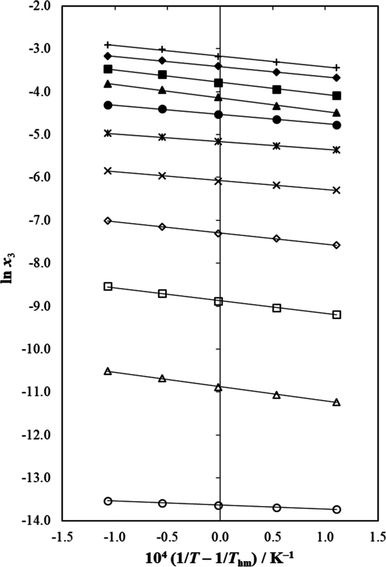 Meloxicam is an analgesic and anti-inflammatory drug widely prescribed in current therapeutics that exhibits very low solubility in water. Thus, this physicochemical property has been studied in N-methyl-pyrrolidone (NMP)-aqueous mixtures at several temperatures to expand the solubility database about pharmaceutical compounds in aqueous-mixed solvents. The flask-shake method and UV-vis spectrophotometry were used for meloxicam solubility determination as a function of temperature and mixture composition. Several cosolvency models, including the Jouyban-Acree model, were challenged for equilibrium solubility correlation and/or prediction. The van't Hoff and Gibbs equations were employed here to calculate the apparent standard thermodynamic quantities for the dissolution and mixing processes of this drug in these aqueous mixtures. Inverse Kirkwood-Buff integrals were employed to calculate the preferential solvation parameters of meloxicam by NMP in all mixtures. Meloxicam equilibrium solubility increased with increasing temperature, and maximal solubilities were observed in neat NMP at all temperatures. The mole fraction solubility of meloxicam increased from 1.137 × 10-6 in neat water to 3.639 × 10-3 in neat NMP at 298.15 K. The Jouyban-Acree model correlated the meloxicam solubility in these mixtures very well. Dissolution processes were endothermic and entropy-driven in all cases, except in neat water, where nonenthalpy- nor entropy-driven was observed. Apparent Gibbs energies of dissolution varied from 34.35 kJ·mol-1 in pure water to 7.99 kJ·mol-1 in pure NMP at a mean harmonic temperature of 303.0 K. A nonlinear enthalpy-entropy relationship was observed in the plot of dissolution enthalpy vs dissolution Gibbs energy. Meloxicam is preferentially hydrated in water-rich mixtures but preferentially solvated by NMP in the composition interval of 0.16 < x 1 < 1.00.