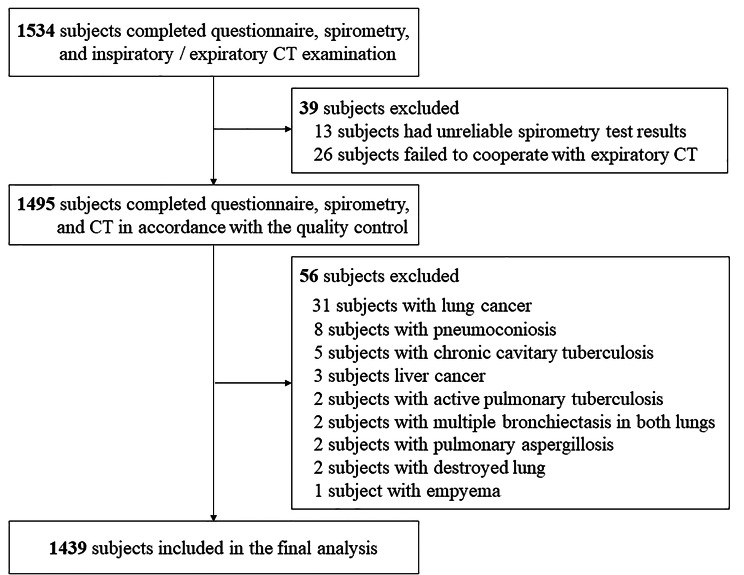 Results: The final analysis included 1439 subjects. PRISm had higher odds and more severity in spirometry-defined SAD (pre-bronchodilator: odds ratio [OR]: 5.99, 95% confidence interval [95%CI]: 3.87-9.27, P < 0.001; post-bronchodilator: OR: 14.05, 95%CI: 8.88-22.24, P < 0.001), IOS-defined SAD (OR: 2.89, 95%CI: 1.82-4.58, P < 0.001), and CT-air trapping (OR: 2.01, 95%CI: 1.08-3.72, P = 0.027) compared with healthy control after adjustment for confounding factors. CT-measured total lung capacity in PRISm was lower than that in healthy controls (4.15 ± 0.98 vs. 4.78 ± 1.05 L, P < 0.05), after adjustment. These results were robust in repeating analyses and subgroup analyses.