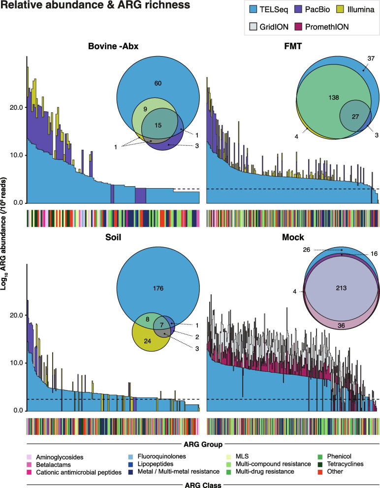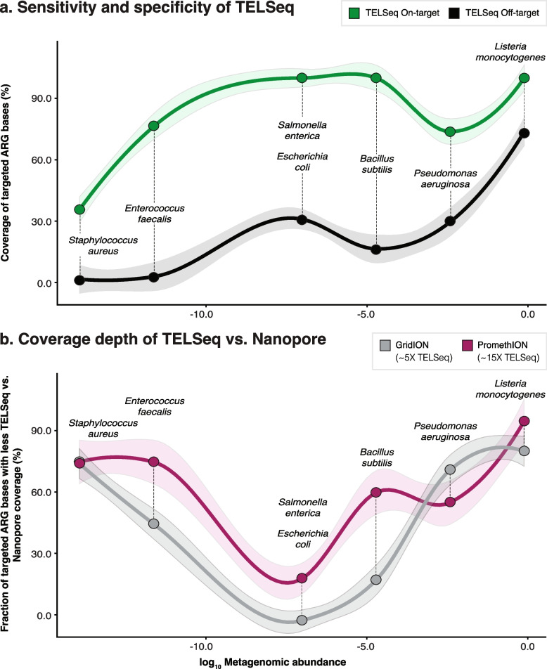 Results: Using technical replicates of diverse sample types, we compared TELSeq performance to that of non-enriched PacBio and short-read Illumina sequencing. TELSeq achieved much higher ARG recovery (>1,000-fold) and sensitivity than the other methods across diverse metagenomes, revealing an extensive resistome profile comprising many low-abundance ARGs, including some with public health importance. Using the long reads generated by TELSeq, we identified numerous MGEs and cargo genes flanking the low-abundance ARGs, indicating that these ARGs could be transferred across bacterial taxa via HGT.