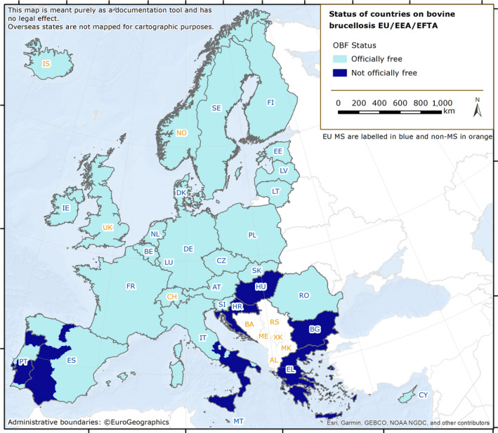 OBF: Officially brucellosis free in cattle. (*): From 2016 to 2019, the data included data reported by the United Kingdom, then an EU MS. Since 1 February 2020, the United Kingdom is a third country.