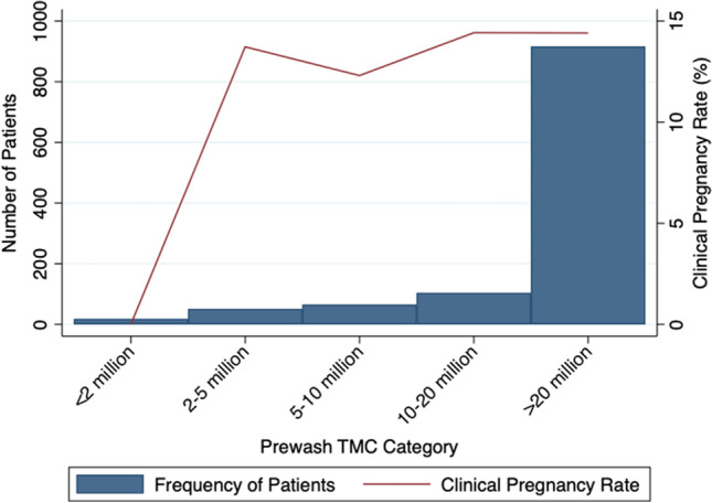 Results: One thousand one hundred fifty-four cycles were analyzed. Of the 162 cycles that resulted in a CPR (14.0%), most had an insemination TMC > 20 million. Compared to TMC > 20 million, there was no difference in CPR or LBR for lower TMC categories, excluding the TMC < 2 million group, in which there were no pregnancies. When TMC was stratified by deciles, there was also no difference in CPR and LBR, including within the lowest decile (TMC 0.09-8.6 million). Younger age and higher ovarian reserve parameters were associated with higher pregnancy and LBR when stratified by TMC. There was no difference in pregnancy and LBR when considering different stimulation protocols.