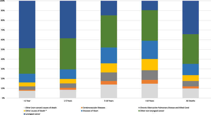 Keywords: Cancer; Causes of death; Laryngeal cancer; Prognosis; Survivorship.