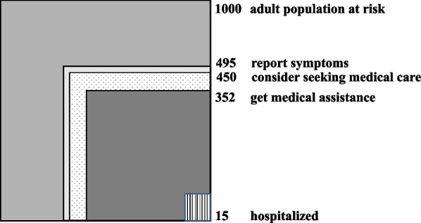 Background: The Ecology of medical care was first published in 1961. The graphical square model showed that 75% of the population in the US and England experience a feeling of illness during a given month, 25% seek medical help and only one percent are hospitalized. In 2001, Green and colleagues found the same findings despite the many changes that occurred over the past decades. The frequency of illness, the desire for assistance and the frequency of seeking and getting medical assistance may differ in different populations due to cultural, economic, social, demographic background and local Health policy. This work describes the ecology of medical care consumption in Israel for the first time and examines the socio-demographic effects on consumption.