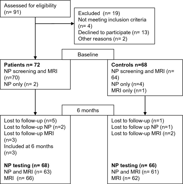 Methods: We examined 68 patients treated for neuroborreliosis 6 months earlier and 66 healthy controls, with a comprehensive neuropsychological test protocol, quantitative structural MRI analysis of the brain and Fatigue Severity Scale.