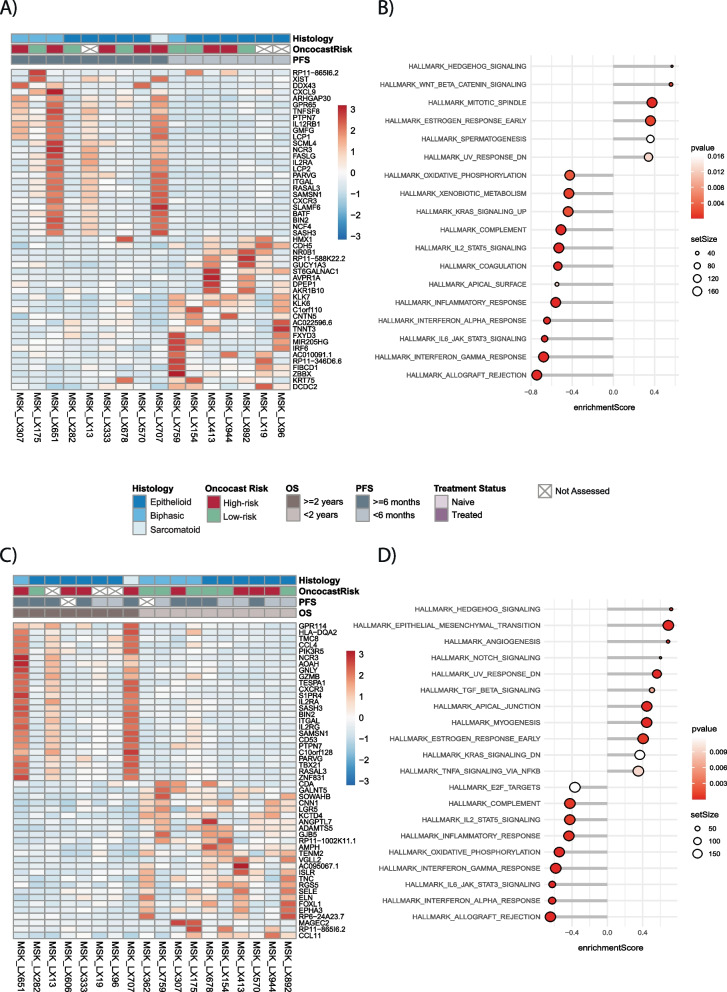 Methods: We established 22 patient-derived xenografts (PDX) from 22 patients with DPM and performed multi-omic analyses to deconvolute the mutational landscapes, global expression profiles, and molecular subtypes of these PDX models and compared features to those of the matched primary patient tumors. Targeted next-generation sequencing (NGS; MSK-IMPACT), immunohistochemistry, and histologic subtyping were performed on all available samples. RNA sequencing was performed on all available PDX samples. Clinical outcomes and treatment history were annotated for all patients. Platinum-doublet progression-free survival (PFS) was determined from the start of chemotherapy until radiographic/clinical progression and grouped into < or ≥ 6 months.