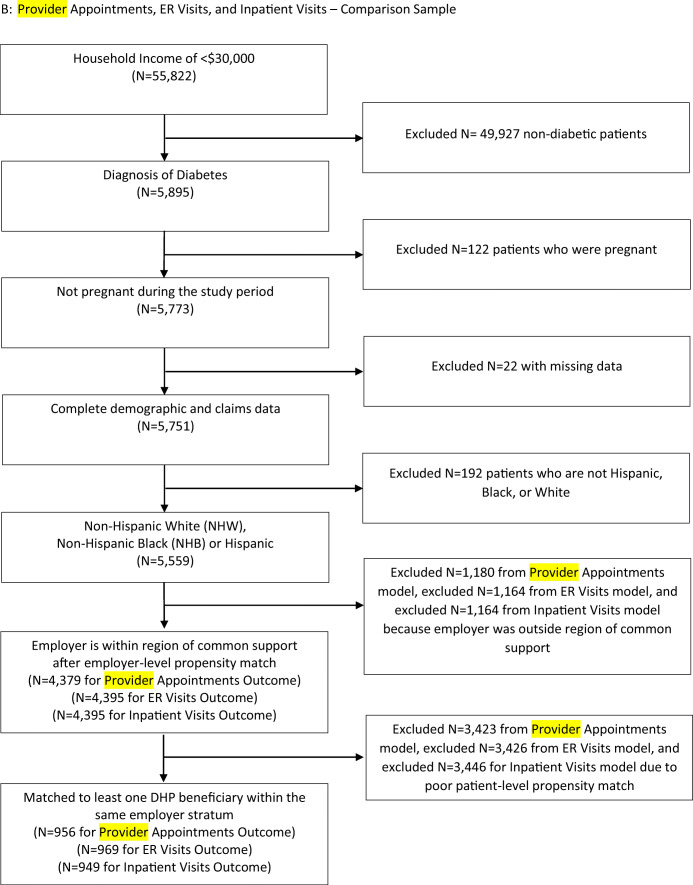 Interventions: The DHP reduces or eliminates out-of-pocket costs for disease management visits, diabetes-related medicines, and diabetes self-monitoring supplies. The DHP also provides access to diabetes-specific telephone case management as well as other online resources.