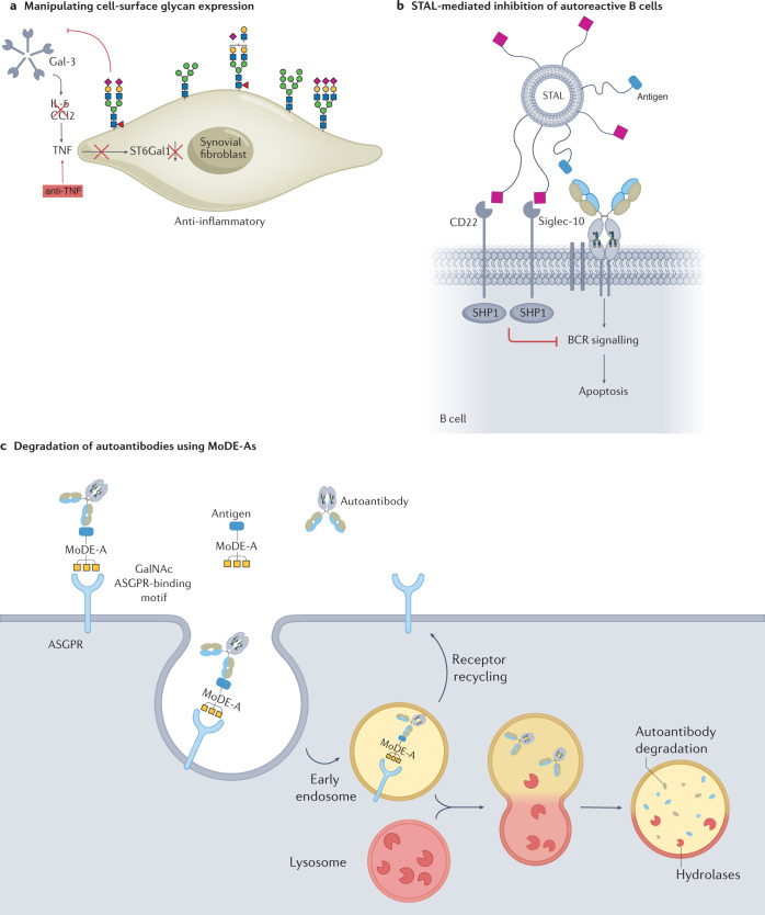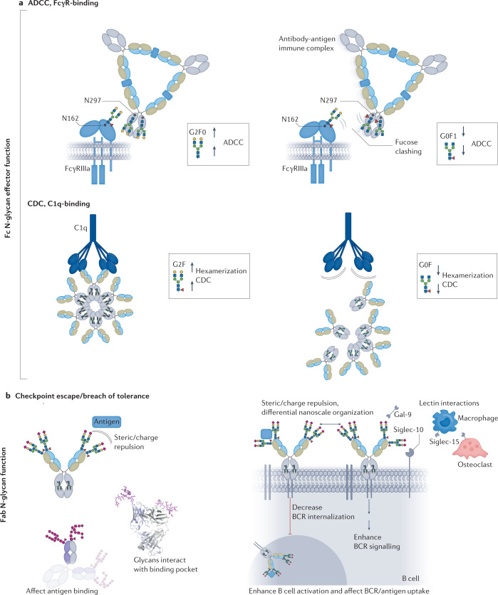 Glycosylation has a profound influence on protein activity and cell biology through a variety of mechanisms, such as protein stability, receptor interactions and signal transduction. In many rheumatic diseases, a shift in protein glycosylation occurs, and is associated with inflammatory processes and disease progression. For example, the Fc-glycan composition on (auto)antibodies is associated with disease activity, and the presence of additional glycans in the antigen-binding domains of some autoreactive B cell receptors can affect B cell activation. In addition, changes in synovial fibroblast cell-surface glycosylation can alter the synovial microenvironment and are associated with an altered inflammatory state and disease activity in rheumatoid arthritis. The development of our understanding of the role of glycosylation of plasma proteins (particularly (auto)antibodies), cells and tissues in rheumatic pathological conditions suggests that glycosylation-based interventions could be used in the treatment of these diseases.