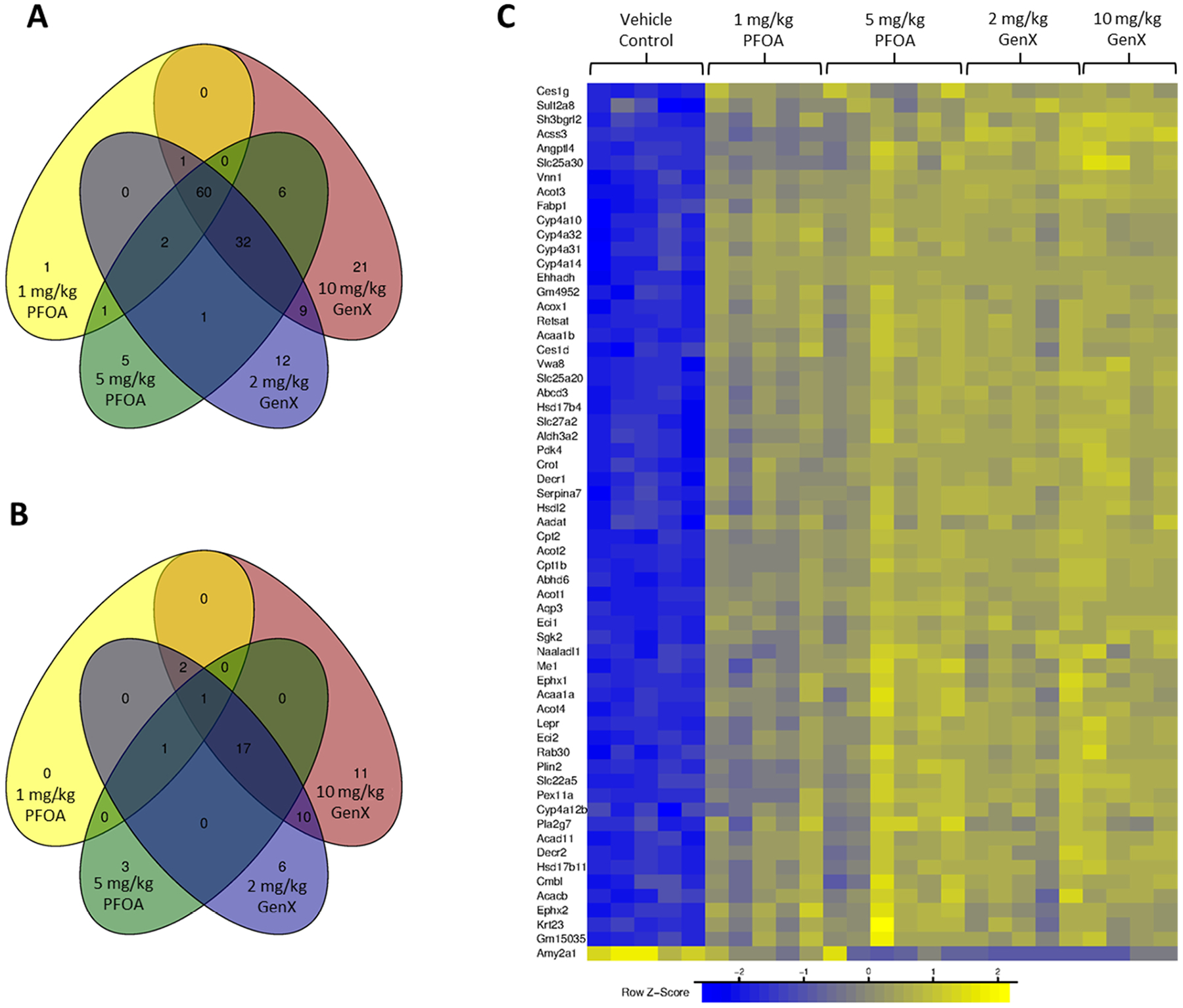 Transcriptional pathways linked to fetal and maternal hepatic dysfunction caused by gestational exposure to perfluorooctanoic acid (PFOA) or hexafluoropropylene oxide-dimer acid (HFPO-DA or GenX) in CD-1 mice