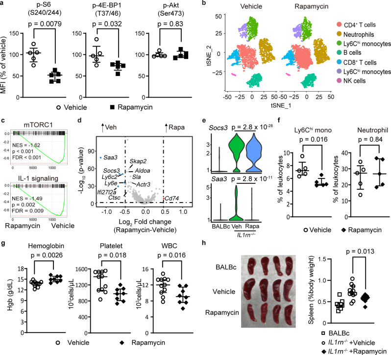 Still's disease is a severe inflammatory syndrome characterized by fever, skin rash and arthritis affecting children and adults. Patients with Still's disease may also develop macrophage activation syndrome, a potentially fatal complication of immune dysregulation resulting in cytokine storm. Here we show that mTORC1 (mechanistic target of rapamycin complex 1) underpins the pathology of Still's disease and macrophage activation syndrome. Single-cell RNA sequencing in a murine model of Still's disease shows preferential activation of mTORC1 in monocytes; both mTOR inhibition and monocyte depletion attenuate disease severity. Transcriptomic data from patients with Still's disease suggest decreased expression of the mTORC1 inhibitors TSC1/TSC2 and an mTORC1 gene signature that strongly correlates with disease activity and treatment response. Unrestricted activation of mTORC1 by Tsc2 deletion in mice is sufficient to trigger a Still's disease-like syndrome, including both inflammatory arthritis and macrophage activation syndrome with hemophagocytosis, a cellular manifestation that is reproduced in human monocytes by CRISPR/Cas-mediated deletion of TSC2. Consistent with this observation, hemophagocytic histiocytes from patients with macrophage activation syndrome display prominent mTORC1 activity. Our study suggests a mechanistic link of mTORC1 to inflammation that connects the pathogenesis of Still's disease and macrophage activation syndrome.