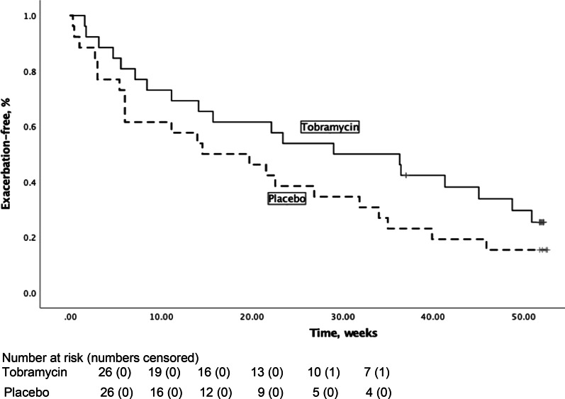 Objective: The primary outcome was the frequency of exacerbations during the 12-month study period. Secondary outcomes were time to first exacerbation, change in lung function and quality of life (QoL), bacterial analysis and safety.