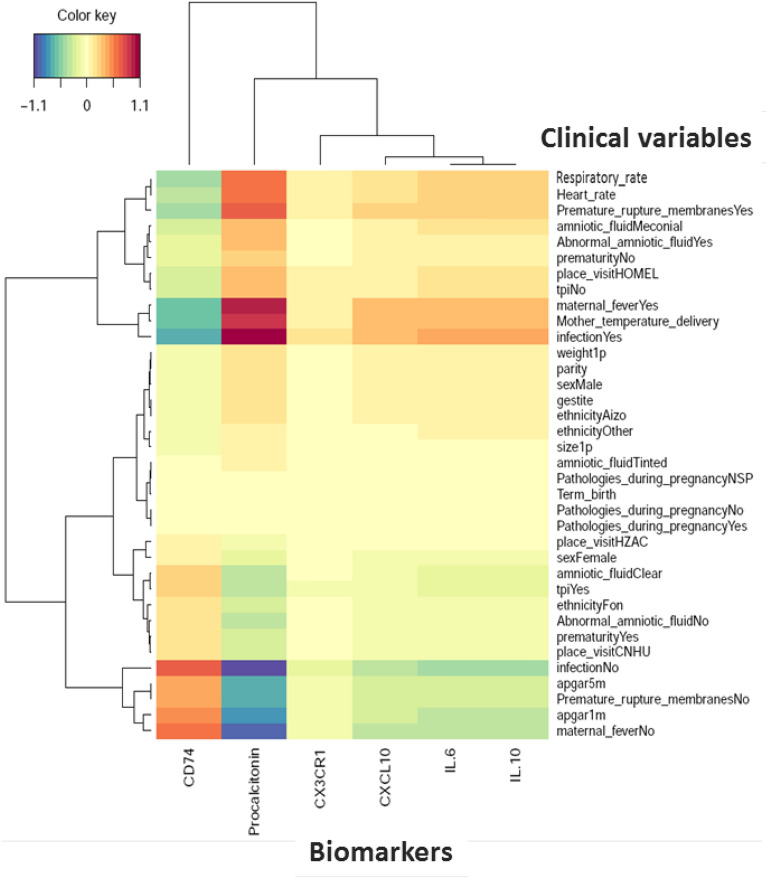 Few biomarkers for sepsis diagnosis are commonly used in neonatal sepsis. While the role of host response is increasingly recognized in sepsis pathogenesis and prognosis, there is a need for evaluating new biomarkers targeting host response in regions where sepsis burden is high and medico-economic resources are scarce. The objective of the study is to evaluate diagnostic and prognostic accuracy of biomarkers of neonatal sepsis in Sub Saharan Africa. This prospective multicentre study included newborn infants delivered in the Abomey-Calavi region in South Benin and their follow-up from birth to 3 months of age. Accuracy of transcriptional (CD74, CX3CR1), proteic (PCT, IL-6, IL-10, IP-10) biomarkers and clinical characteristics to diagnose and prognose neonatal sepsis were measured. At delivery, cord blood from all consecutive newborns were sampled and analysed, and infants were followed for a 12 weeks' period. Five hundred and eighty-one newborns were enrolled. One hundred and seventy-two newborns developed neonatal sepsis (29.6%) and death occurred in forty-nine infants (8.4%). Although PCT, IL-6 and IP-10 levels were independently associated with sepsis diagnosis, diagnostic accuracy of clinical variables combinations was similar to combinations with biomarkers and superior to biomarkers alone. Nonetheless, CD74, being the only biomarkers independently associated with mortality, showed elevated prognosis accuracy (AUC > 0.9) either alone or in combination with other biomarkers (eg. CD74/IP-10) or clinical criterion (eg. Apgar 1, birth weight). These results suggest that cord blood PCT had a low accuracy for diagnosing early onset neonatal sepsis in Sub Saharan African neonates, while association of clinical criterion showed to be more accurate than any biomarkers taken independently. At birth, CD74, either associated with IP-10 or clinical criterion, had the best accuracy in prognosing sepsis mortality.Trial registration Clinicaltrial.gov registration number: NCT03780712. Registered 19 December 2018. Retrospectively registered.