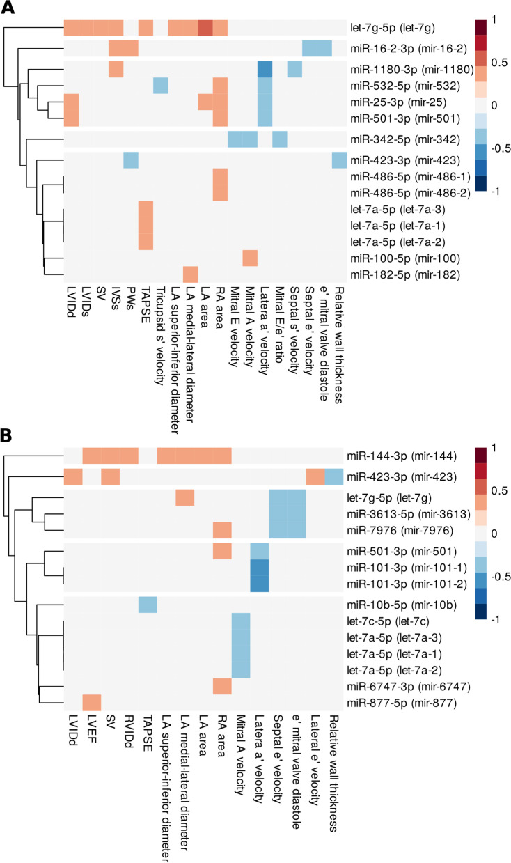 Results: We found that especially miRNAs contained within EVs may be informative in terms of cardiomyopathy development and may regulate pathways related to neurotrophin signaling, transforming growth factor beta (TGFβ) or epidermal growth factor receptors (ErbB). We identified vesicular miR-144-3p and miR-423-3p as the most variable between groups and significantly correlated with echocardiographic parameters and, respectively, for plasma: let-7g-5p and miR-16-2-3p. Moreover, vesicular miR-144-3p correlates with the highest number of echocardiographic parameters and is differentially expressed in the circulation of patients with dilated cardiomyopathy. We also found that distribution of particular miRNAs between of plasma and EVs (proportion between compartments) e.g., miR-184 in ALL, is altered, suggesting changes within secretory and miRNA sorting mechanisms.