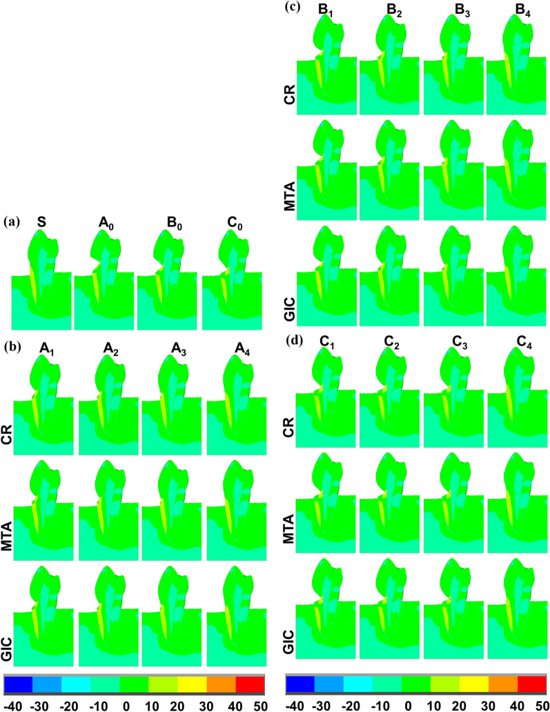 Conclusions: Partial restorations that fully covered defected zeniths improved the stress distributions in NCCLs, while the stress distributions were unchanged or worsened under other circumstances. CR was the optimal material for partial restorations compared to GIC and MTA.