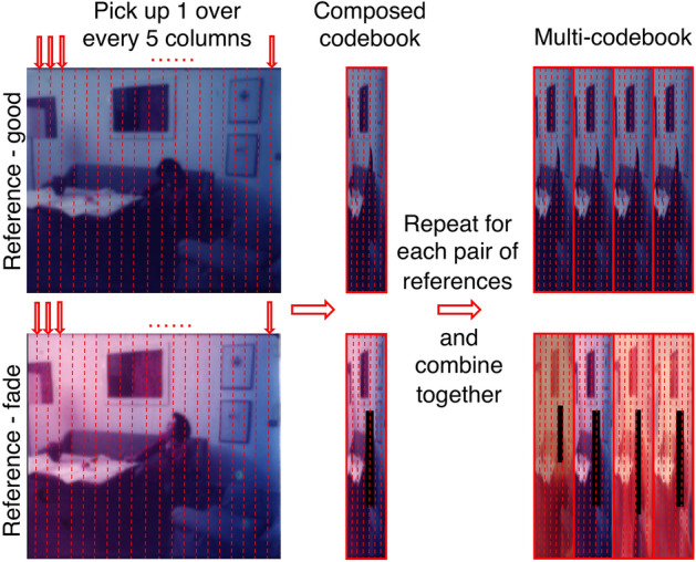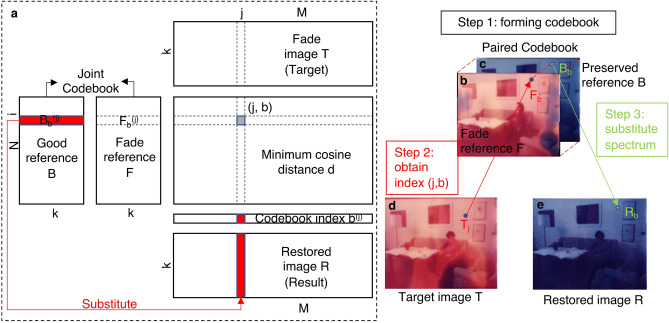 Digital restoration is a rapidly growing methodology within the field of heritage conservation, especially for early cinematic films which have intrinsically unstable dye colourants that suffer from irreversible colour fading. Although numerous techniques to restore film digitally have emerged recently, complex degradation remains a challenging problem. This paper proposes a novel vector quantization (VQ) algorithm for restoring movie frames based on the acquisition of spectroscopic data with a custom-made push-broom VNIR hyperspectral camera (380-780 nm). The VQ algorithm utilizes what we call a multi-codebook that correlates degraded areas with corresponding non-degraded ones selected from reference frames. The spectral-codebook was compared with a professional commercially available film restoration software (DaVinci Resolve 17) tested both on RGB and on hyperspectral providing better results in terms of colour reconstruction.