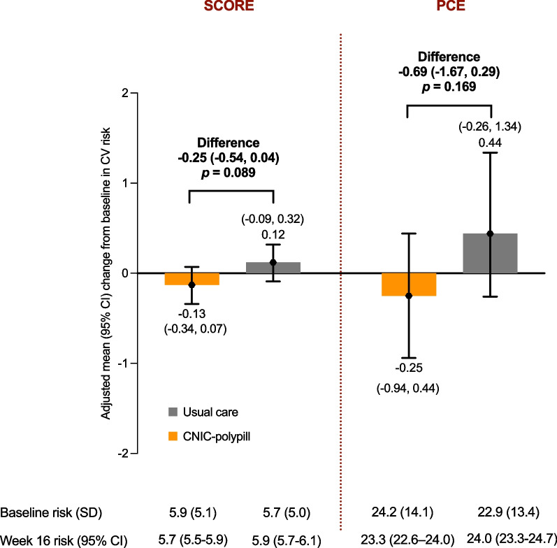 Conclusion: The switch from conventional treatment to the CNIC-polypill approach was safe and appears a reasonable strategy to control risk factors and prevent CVD. Trial registration This trial was registered in the EU Clinical Trials Register (EudraCT) the 20th February 2017 (register number 2016-004015-13; https://www.clinicaltrialsregister.eu/ctr-search/search?query=2016-004015-13 ).