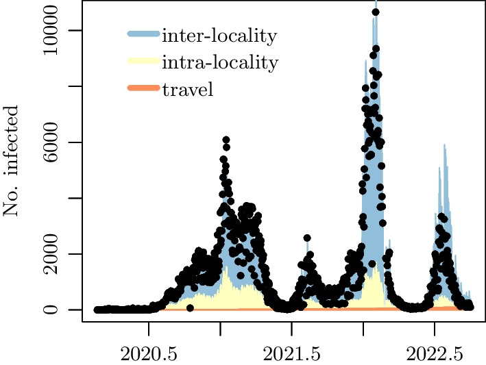 In this paper, we propose a general framework for the reconstruction of the underlying cross-regional transmission network contributing to the spread of an infectious disease. We employ an autoregressive model that allows to decompose the mean number of infections into three components that describe: intra-locality infections, inter-locality infections, and infections from other sources such as travelers arriving to a country from abroad. This model is commonly used in the identification of spatiotemporal patterns in seasonal infectious diseases and thus in forecasting infection counts. However, our contribution lies in identifying the inter-locality term as a time-evolving network, and rather than using the model for forecasting, we focus on the network properties without any assumption on seasonality or recurrence of the disease. The topology of the network is then studied to get insight into the disease dynamics. Building on this, and particularly on the centrality of the nodes of the identified network, a strategy for intervention and disease control is devised.
