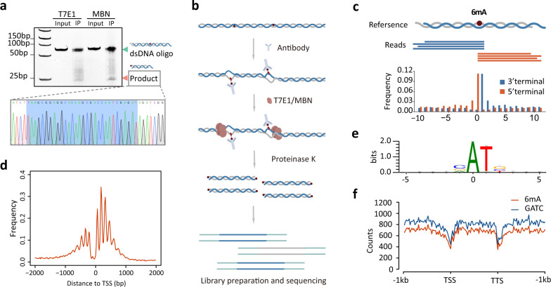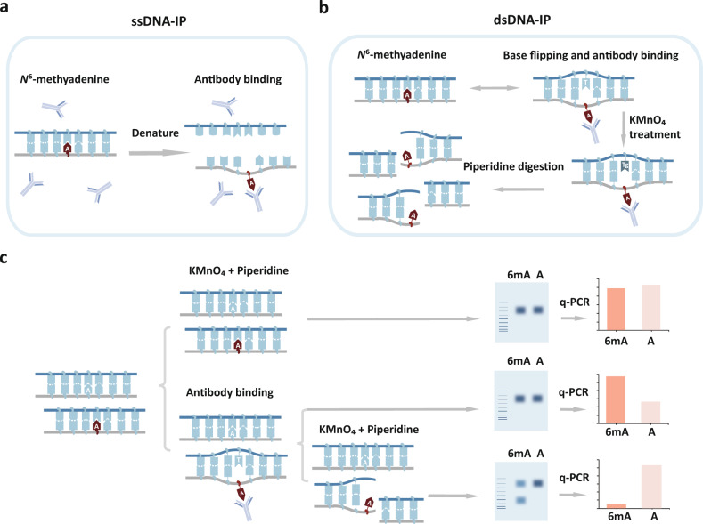 N6-deoxyadenosine methylation (6mA) is the most widespread type of DNA modification in prokaryotes and is also abundantly distributed in some unicellular eukaryotes. However, 6mA levels are remarkably low in mammals. The lack of a precise and comprehensive mapping method has hindered more advanced investigations of 6mA. Here, we report a new method MM-seq (modification-induced mismatch sequencing) for genome-wide 6mA mapping based on a novel detection principle. We found that modified DNA bases are prone to form a local open region that allows capture by antibody, for example, via a DNA breathing or base-flipping mechanism. Specified endonuclease or exonuclease can recognize the antibody-stabilized mismatch-like structure and mark the exact modified sites for sequencing readout. Using this method, we examined the genomic positions of 6mA in bacteria (E. coli), green algae (C. reinhardtii), and mammalian cells (HEK239T, Huh7, and HeLa cells). In contrast to bacteria and green algae, human cells possess a very limited number of 6mA sites which are sporadically distributed across the genome of different cell types. After knocking out the RNA m6A methyltransferase METTL3 in mouse ES cells, 6mA becomes mostly diminished. Our results imply that rare 6mA in the mammalian genome is introduced by RNA m6A machinery via a non-targeted mechanism.