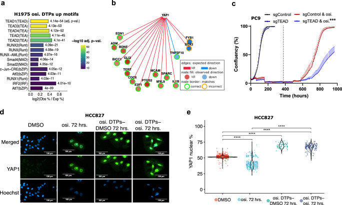 Third-generation EGFR tyrosine kinase inhibitors (EGFR-TKIs), including osimertinib, an irreversible EGFR-TKI, are important treatments for non-small cell lung cancer with EGFR-TKI sensitizing or EGFR T790M resistance mutations. While patients treated with osimertinib show clinical benefit, disease progression and drug resistance are common. Emergence of de novo acquired resistance from a drug tolerant persister (DTP) cell population is one mechanism proposed to explain progression on osimertinib and other targeted cancer therapies. Here we profiled osimertinib DTPs using RNA-seq and ATAC-seq to characterize the features of these cells and performed drug screens to identify therapeutic vulnerabilities. We identified several vulnerabilities in osimertinib DTPs that were common across models, including sensitivity to MEK, AURKB, BRD4, and TEAD inhibition. We linked several of these vulnerabilities to gene regulatory changes, for example, TEAD vulnerability was consistent with evidence of Hippo pathway turning off in osimertinib DTPs. Last, we used genetic approaches using siRNA knockdown or CRISPR knockout to validate AURKB, BRD4, and TEAD as the direct targets responsible for the vulnerabilities observed in the drug screen.