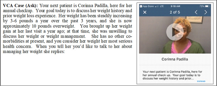 Results: Descriptive statistics were calculated and learning points were created for the individualized feedback reports. In VCA debriefing interviews with residents, five themes emerged: 1) Overall the VCA was easy to use, helpful and more engaging than traditional learning and assessment modes, 2) Patient scenarios were similar to those encountered in the clinic, including diversity, health literacy and different stages of change, 3) The knowledge, skills, and reminders from the VCA can be transferred to practice, 4) Feedback reports were helpful, to the point and informative, including the exemplar response of how to best respond to the scenario, and 5) The VCA provide alternatives and practice scenarios to real-life patient situations when they aren't always accessible.