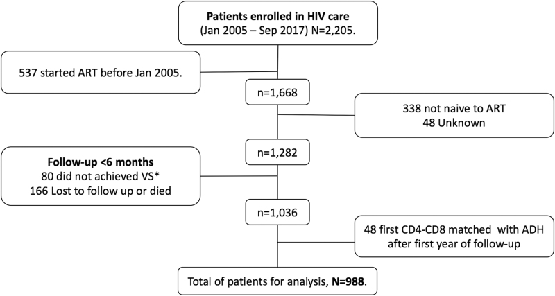 Keywords: acquired immunodeficiency syndrome; adult; cohort studies; linear mixed models; pharmacy; sustained virologic response.