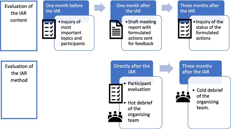 Conclusions: Based on the evaluations, we conclude that the IAR method can be of value during long-term crises, such as the COVID-19 pandemic response. Although it is challenging to dedicate time and effort to the organization and attendance of IAR meetings during crisis, the IAR method is feasible in an online setting if appropriate organizing and technical capacity is available. A participatory set-up supports the IAR method as a starting point for continuous exchange and learning during ongoing crises.