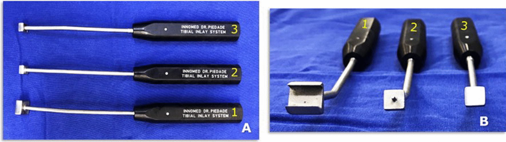 Surgical technique: We present a PCL tibial inlay reconstruction technique using a set of instruments involving three tools (a slot cut, a bone plug positioner, and an impactor).
