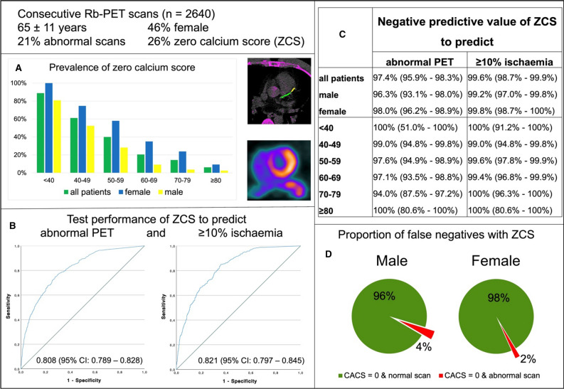 Conclusions: ZCS is frequent, and most often consistent with normal PET scans. ZCS offers an excellent NPV to exclude an abnormal PET and ≥ 10% ischemia across different gender and age groups. CACS is a suitable gatekeeper before advanced cardiac imaging, and potential radiation/cost savings are substantial. However, further studies including safety endpoints are needed.