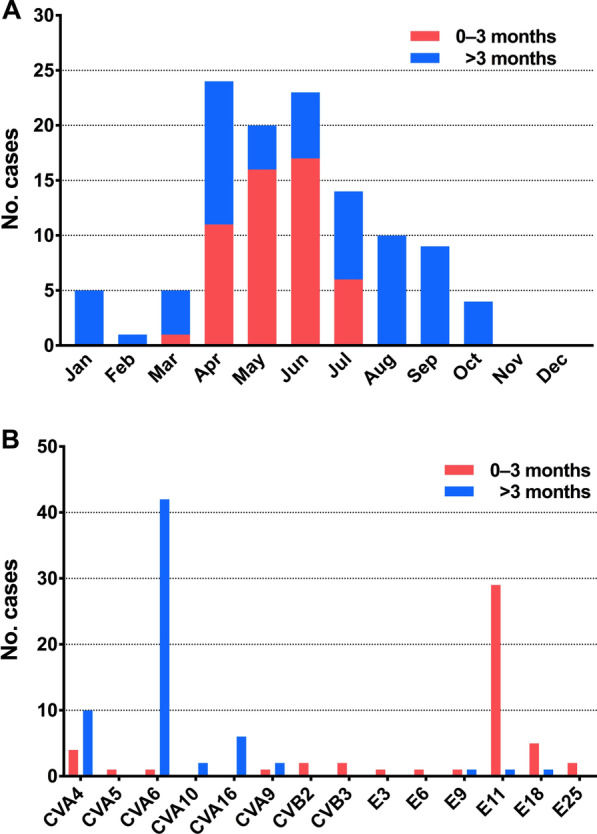 Conclusions: Our data indicated that EV-B types mainly cause severe infection in infants aged 0-3 months. Therefore, knowledge about EV-B types could have implications in designing effective intervention and prevention strategies for young infants with severe EV infection.
