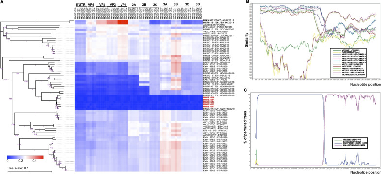 Results: Clinical findings showed that severe infection was more common in infants aged 0-3 months than in older children (78.0% vs. 35.4%, p < 0.001), with higher morbidity of pneumonia, meningitis, and sepsis (p < 0.01). EV-B types were detected more frequently in infants aged 0-3 months than in older children (88.0% vs. 7.7%, p < 0.001). Echovirus 11 was the most identified EV-B, and it recombined with E6 in P2 and P3 regions. Risk factors for severe EV infection included EV-B types infection, age less than 3 months, elevated alanine aminotransferase level, abnormal platelet count, and abnormal cerebrospinal fluid characteristics.