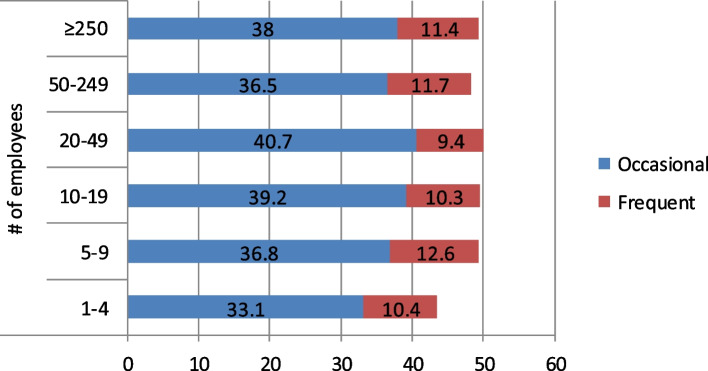 Results: Almost half (48.7%) of the sample reported exposure to some form of offensive behaviour; 37.6% of participants reported occasional-, while 11.1% reported weekly or daily exposure. More women than men were exposed to offensive workplace behaviours, and those targeted the most were individuals aged 18-29 and in companies employing 20-49 employees. Top managers reported the lowest amount of bullying, while unskilled labourers reported the most frequent exposure. A moderately strong relationship was discovered between exposure to workplace offensive behaviours and all indicators of mental health.