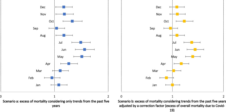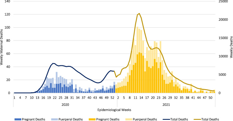 Conclusions: There was excess maternal mortality in 2020 in Brazil. Even with adjustment for the expected excess mortality from Covid-19 in women of childbearing age, the number of maternal deaths exceeds expectations, suggesting that there were deaths among pregnant and postpartum women indirectly caused by the pandemic, compromising access to prenatal care., adequate childbirth and puerperium.