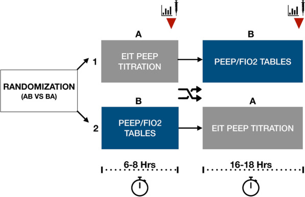 Methods: A single-center, randomized crossover pilot trial comparing EIT-guided PEEP selection versus PEEP selection using the High-PEEP/FiO2 table in patients with moderate-severe acute respiratory distress syndrome. The primary outcome was the change in mechanical power after each PEEP selection strategy. Secondary outcomes included changes in the 4 × driving pressure + respiratory rate (4 ΔP, + RR index) index, driving pressure, plateau pressure, PaO2/FiO2 ratio, and static compliance.