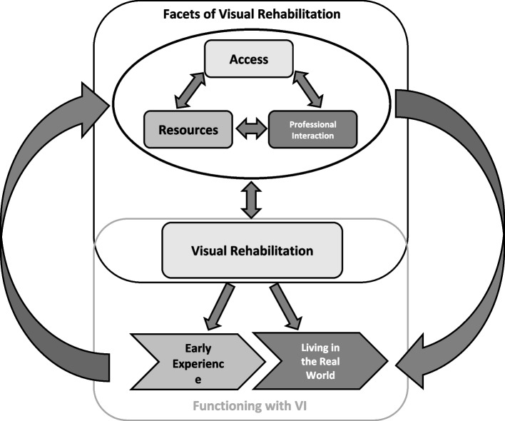 Results: We completed 50 interviews: 19 survivor interviews and 31 provider interviews. The majority of survivors were male (n = 14) and recruited from community settings (n = 16). Providers varied in profession and location within the care continuum. Two key themes emerged from the provider and survivor interviews pertaining to (a) facets of visual rehabilitation (sub-themes: access, resources, and multidisciplinary professional interaction); and (b) functioning with post-stroke VI (sub-themes: early experiences post-stroke and living with VI in the real world).