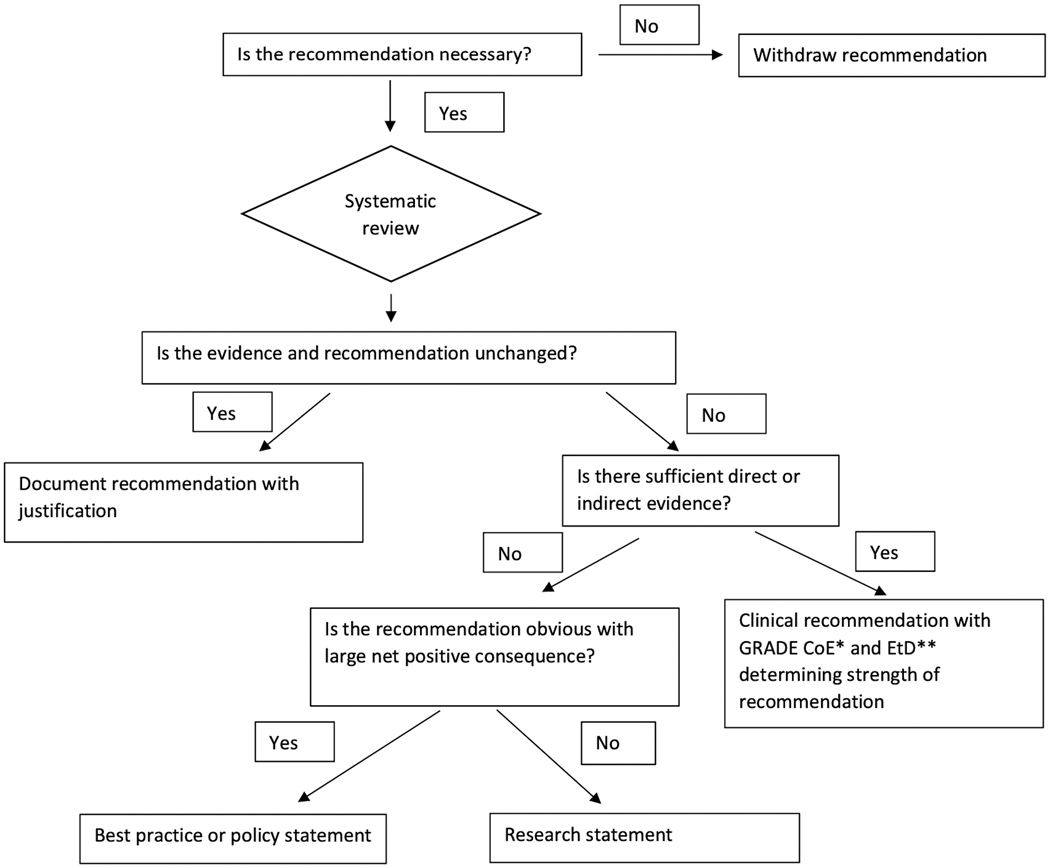 Data extraction: We used a standardized data extraction form to construct evidence tables, grade the evidence, and formulate recommendations or statements using the Grading of Recommendations Assessment, Development and Evaluation (GRADE) system.