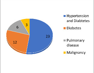 Materials and methods: The present prospective study was conducted, after approval by Institutional Ethics Committee, in the Department of ENT, SMGS Hospital, GMC Jammu from May 2020 to March 2021 over 60 patients having need for prolonged mechanical ventilation and having tested positive for COVID-19 with nasopharyngeal swab on rtPCR assay testing. Detailed information regarding following aspects was gathered :Age, Gender, Comorbidities (Diabetes, Cardiovascular disease, Pulmonary disease, Malignancy), time of endotracheal intubation to tracheostomy, time to wean sedation after tracheostomy, time to wean mechanical ventilation after tracheostomy, surgical complications, mortality, any health care worker in operating team getting infected by SARS-CoV-2. All 60 patients underwent Elective Open Tracheostomy Bed-side in the ICU section of our institute.