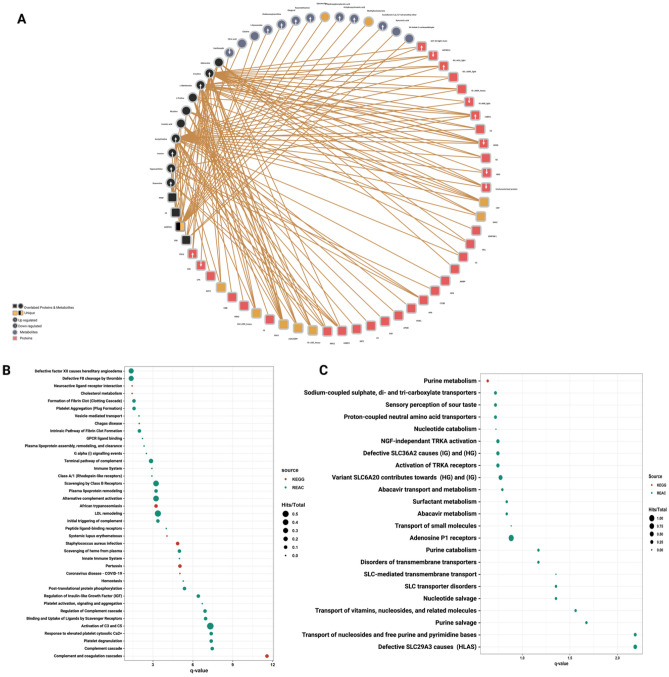 Three years after the pandemic, we still have an imprecise comprehension of the pathogen landscape and we are left with an urgent need for early detection methods and effective therapy for severe COVID-19 patients. The implications of infection go beyond pulmonary damage since the virus hijacks the host's cellular machinery and consumes its resources. Here, we profiled the plasma proteome and metabolome of a cohort of 57 control and severe COVID-19 cases using high-resolution mass spectrometry. We analyzed their proteome and metabolome profiles with multiple depths and methodologies as conventional single omics analysis and other multi-omics integrative methods to obtain the most comprehensive method that portrays an in-depth molecular landscape of the disease. Our findings revealed that integrating the knowledge-based and statistical-based techniques (knowledge-statistical network) outperformed other methods not only on the pathway detection level but even on the number of features detected within pathways. The versatile usage of this approach could provide us with a better understanding of the molecular mechanisms behind any biological system and provide multi-dimensional therapeutic solutions by simultaneously targeting more than one pathogenic factor.