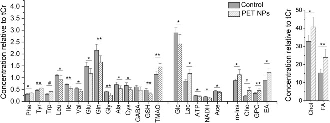 Plastic pollution, especially by nanoplastics (NPs), has become an emerging topic due to the widespread existence and accumulation in the environment. The research on bioaccumulation and toxicity mechanism of NPs from polyethylene terephthalate (PET), which is widely used for packaging material, have been poorly investigated. Herein, we report the first use of high-resolution magic-angle spinning (HRMAS) NMR based metabolomics in combination with toxicity assay and behavioural end points to get systems-level understanding of toxicity mechanism of PET NPs in intact zebrafish embryos. PET NPs exhibited significant alterations on hatching and survival rate. Accumulation of PET NPs in larvae were observed in liver, intestine, and kidney, which coincide with localization of reactive oxygen species in these areas. HRMAS NMR data reveal that PET NPs cause: (1) significant alteration of metabolites related to targeting of the liver and pathways associated with detoxification and oxidative stress; (2) impairment of mitochondrial membrane integrity as reflected by elevated levels of polar head groups of phospholipids; (3) cellular bioenergetics as evidenced by changes in numerous metabolites associated with interrelated pathways of energy metabolism. Taken together, this work provides for the first time a comprehensive system level understanding of toxicity mechanism of PET NPs exposure in intact larvae.