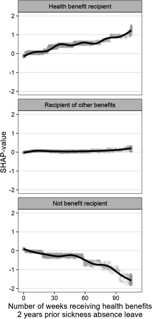 Results: There were no practical differences in the XGB and MLR models' predictive ability. Industry, job skills, citizenship, unemployment insurance, gender, and period had limited importance in predicting welfare dependency in both models. On the other hand, welfare dependency history and reason for sickness absence were strong predictors. Graphical SHAP-analysis of the XGB model did not indicate substantial deviations from linearity assumptions implied by the multinomial regression model.