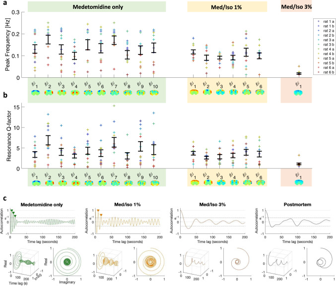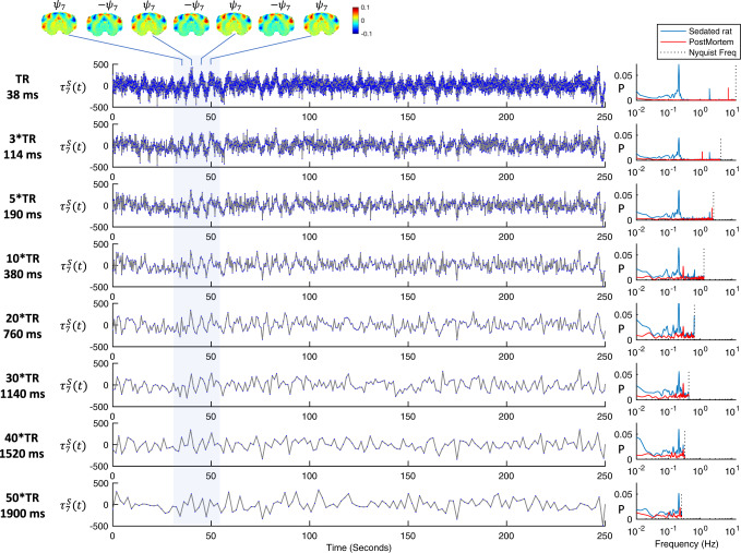 Spontaneous fluctuations in functional magnetic resonance imaging (fMRI) signals correlate across distant brain areas, shaping functionally relevant intrinsic networks. However, the generative mechanism of fMRI signal correlations, and in particular the link with locally-detected ultra-slow oscillations, are not fully understood. To investigate this link, we record ultrafast ultrahigh field fMRI signals (9.4 Tesla, temporal resolution = 38 milliseconds) from female rats across three anesthesia conditions. Power at frequencies extending up to 0.3 Hz is detected consistently across rat brains and is modulated by anesthesia level. Principal component analysis reveals a repertoire of modes, in which transient oscillations organize with fixed phase relationships across distinct cortical and subcortical structures. Oscillatory modes are found to vary between conditions, resonating at faster frequencies under medetomidine sedation and reducing both in number, frequency, and duration with the addition of isoflurane. Peaking in power within clear anatomical boundaries, these oscillatory modes point to an emergent systemic property. This work provides additional insight into the origin of oscillations detected in fMRI and the organizing principles underpinning spontaneous long-range functional connectivity.