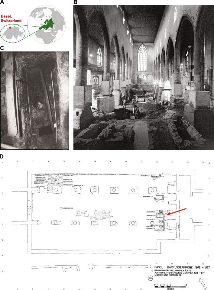 - Hotz G, Augsburger M, Briellmann T, Bircher A, Castella V, Fiechter R, et al. Der rätselhafte Mumienfund aus der Barfüsserkirche in Basel. Ein aussergewöhnliches Beispiel interdisziplinärer Familienforschung. Jahrbuch der Schweizerischen Gesellschaft für Familienforschung. 2018;2018:1–30.