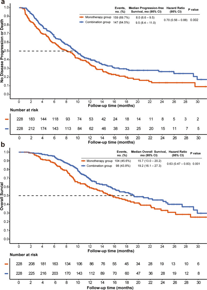 There is considerable potential for integrating transarterial chemoembolization (TACE), programmed death-(ligand)1 (PD-[L]1) inhibitors, and molecular targeted treatments (MTT) in hepatocellular carcinoma (HCC). It is necessary to investigate the therapeutic efficacy and safety of TACE combined with PD-(L)1 inhibitors and MTT in real-world situations. In this nationwide, retrospective, cohort study, 826 HCC patients receiving either TACE plus PD-(L)1 blockades and MTT (combination group, n = 376) or TACE monotherapy (monotherapy group, n = 450) were included from January 2018 to May 2021. The primary endpoint was progression-free survival (PFS) according to modified RECIST. The secondary outcomes included overall survival (OS), objective response rate (ORR), and safety. We performed propensity score matching approaches to reduce bias between two groups. After matching, 228 pairs were included with a predominantly advanced disease population. Median PFS in combination group was 9.5 months (95% confidence interval [CI], 8.4-11.0) versus 8.0 months (95% CI, 6.6-9.5) (adjusted hazard ratio [HR], 0.70, P = 0.002). OS and ORR were also significantly higher in combination group (median OS, 19.2 [16.1-27.3] vs. 15.7 months [13.0-20.2]; adjusted HR, 0.63, P = 0.001; ORR, 60.1% vs. 32.0%; P < 0.001). Grade 3/4 adverse events were observed at a rate of 15.8% and 7.5% in combination and monotherapy groups, respectively. Our results suggest that TACE plus PD-(L)1 blockades and MTT could significantly improve PFS, OS, and ORR versus TACE monotherapy for Chinese patients with predominantly advanced HCC in real-world practice, with an acceptable safety profile.