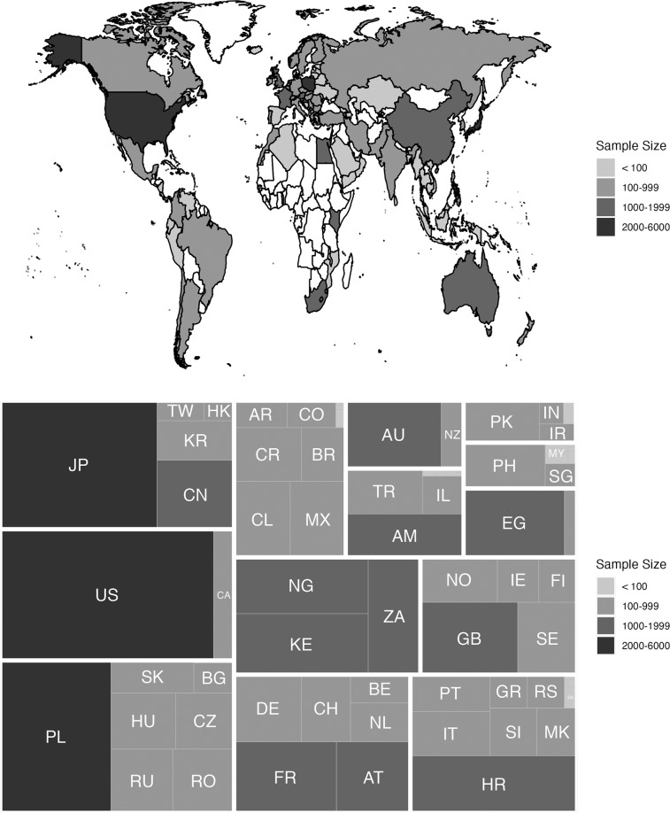 The top panel includes a map of the countries/geopolitical locations from which data…