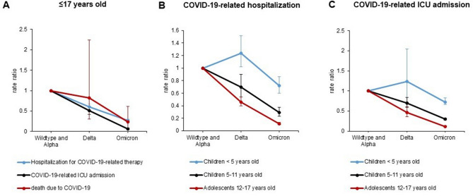 Comparing SARS-CoV-2 variants among children and adolescents in Germany: relative risk of COVID-19-related hospitalization, ICU admission and mortality