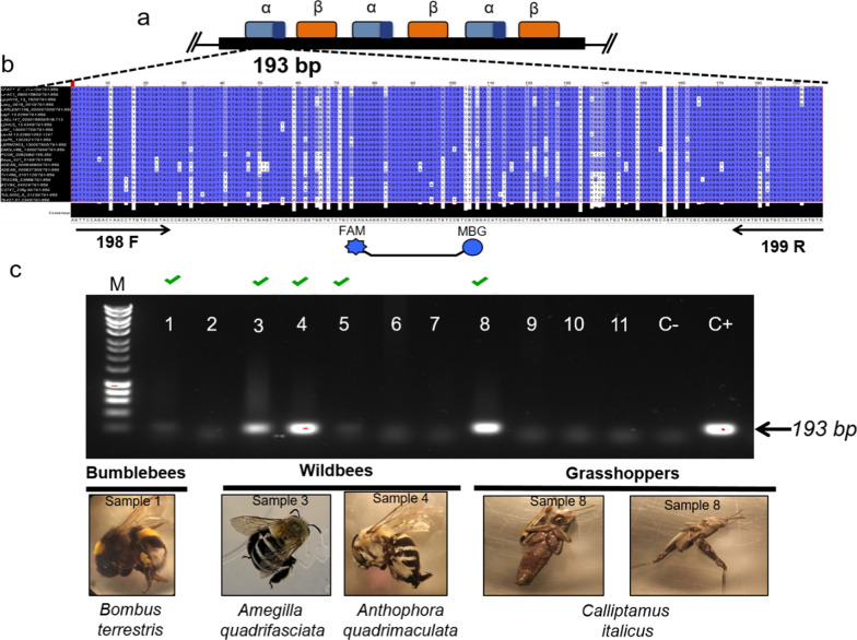 Methods: A TaqMan qPCR assay based on a trypanosomatid-conserved region of the α-tubulin gene was standardized and evaluated. The limits of detection, sensitivity and versatility of the α-tubulin TaqMan assay were tested and validated using field samples of honeybee workers, wild bees, bumblebees and grasshoppers, as well as in the human infective trypanosomatid Leishmania major.