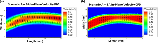 Results: Flow redistribution within cerebral arteries after ischemic stroke is strongly dependent on the severity of the occlusion and on the volume flow extracted by endovascular aspiration. Numerical simulations exhibit an excellent correlation of R = 0.92 for flow rates and a good correlation of R = 0.73 for pressures. Further on, the local velocity field inside the basilar artery had a good agreement between CFD model and particle image velocimetry (PIV) data.