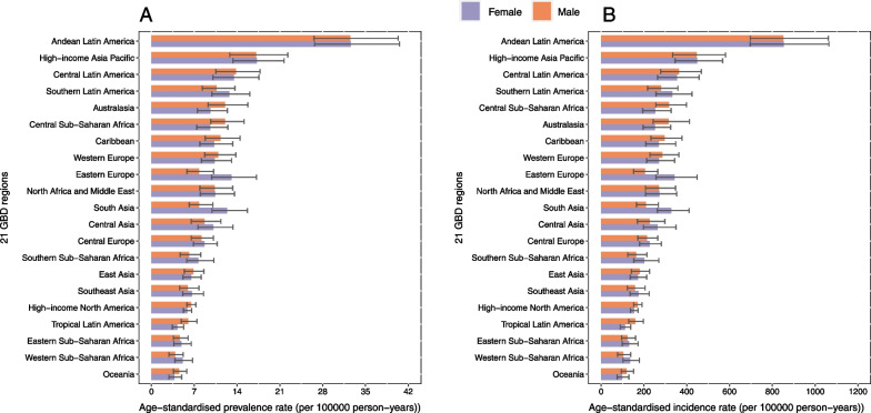 Methods: The numbers and age-standardized prevalence, incidence, and YLD rates per 100,000 population of appendicitis were estimated across regions and countries by age, sex, and sociodemographic index (SDI). All the estimates were reported with 95% uncertainty intervals (UIs).