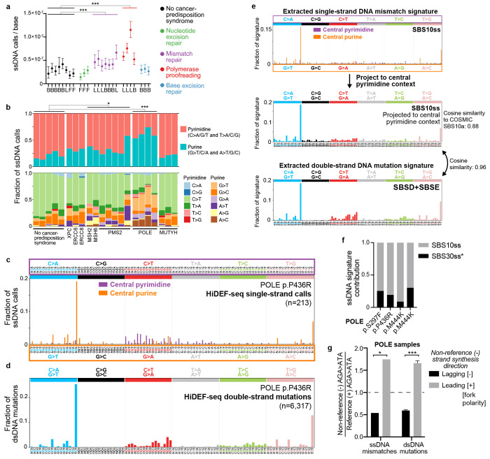 Mutations accumulate in the genome of every cell of the body throughout life, causing cancer and other genetic diseases1-4. Almost all of these mosaic mutations begin as nucleotide mismatches or damage in only one of the two strands of the DNA prior to becoming double-strand mutations if unrepaired or misrepaired5. However, current DNA sequencing technologies cannot resolve these initial single-strand events. Here, we developed a single-molecule, long-read sequencing method that achieves single-molecule fidelity for single-base substitutions when present in either one or both strands of the DNA. It also detects single-strand cytosine deamination events, a common type of DNA damage. We profiled 110 samples from diverse tissues, including from individuals with cancer-predisposition syndromes, and define the first single-strand mismatch and damage signatures. We find correspondences between these single-strand signatures and known double-strand mutational signatures, which resolves the identity of the initiating lesions. Tumors deficient in both mismatch repair and replicative polymerase proofreading show distinct single-strand mismatch patterns compared to samples deficient in only polymerase proofreading. In the mitochondrial genome, our findings support a mutagenic mechanism occurring primarily during replication. Since the double-strand DNA mutations interrogated by prior studies are only the endpoint of the mutation process, our approach to detect the initiating single-strand events at single-molecule resolution will enable new studies of how mutations arise in a variety of contexts, especially in cancer and aging.
