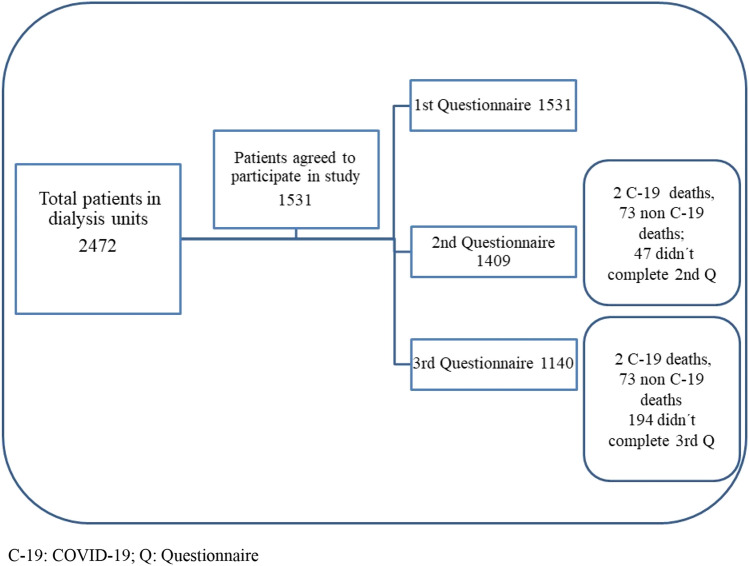 Results: A total of 1531 patients receiving dialysis treatment accepted to participate. PD patients represented an 18% of study patients. Lethality was higher in peritoneal dialysis patients with COVID-19 infection than in hemodialysis in the study group (p 0.02). Total deaths in dialysis patients for 2020 were 156 patients, before vaccination; 79 in 2021; and 25 for the first trimester of 2022. Lethality for the period of 2020-2022 was 9.3% for dialysis patients and 0.2% for non-dialysis population. There was no difference in symptoms in first dose, but with second dose, hemodialysis patients reported fewer symptoms than peritoneal dialysis patients (p < 0.0001).